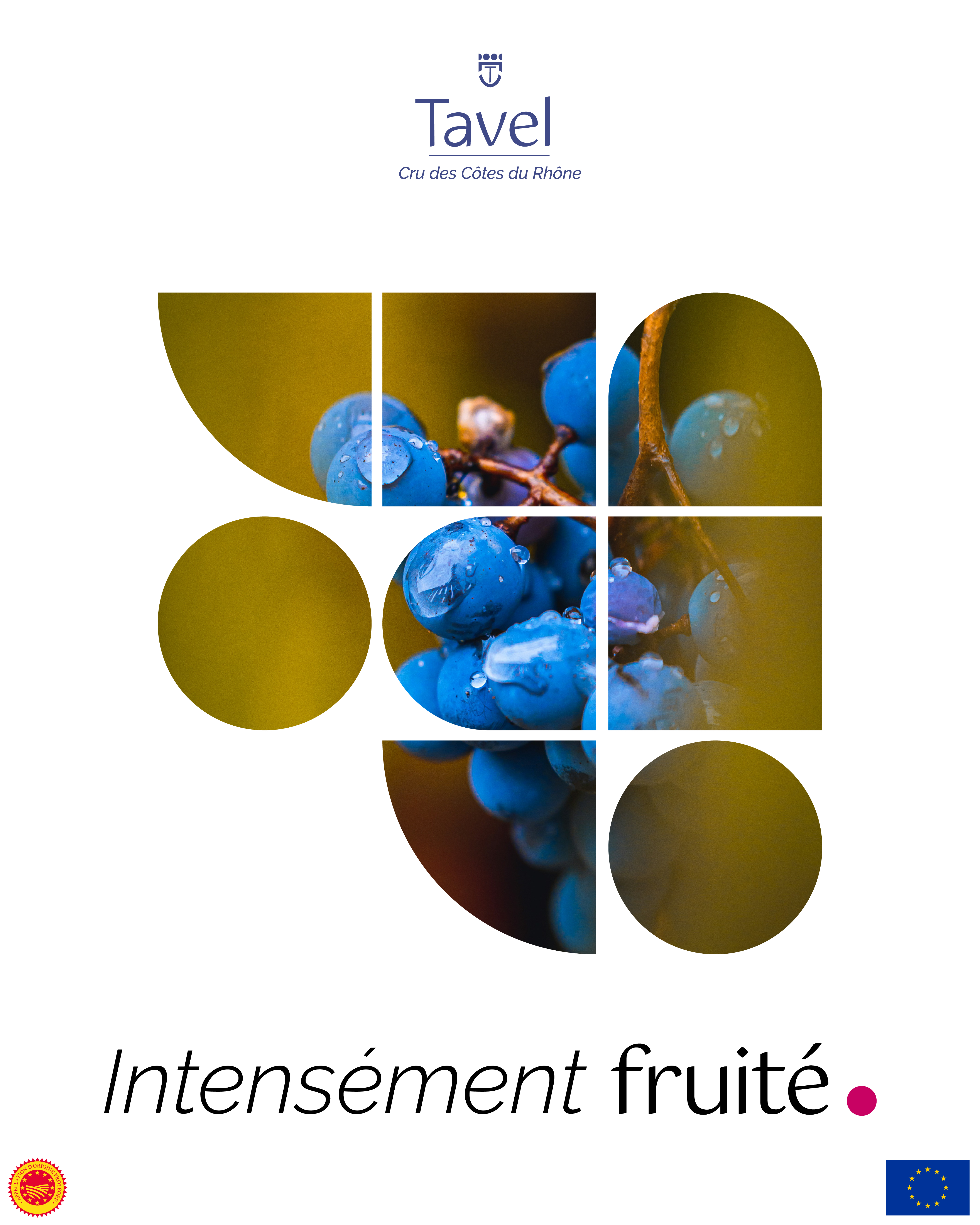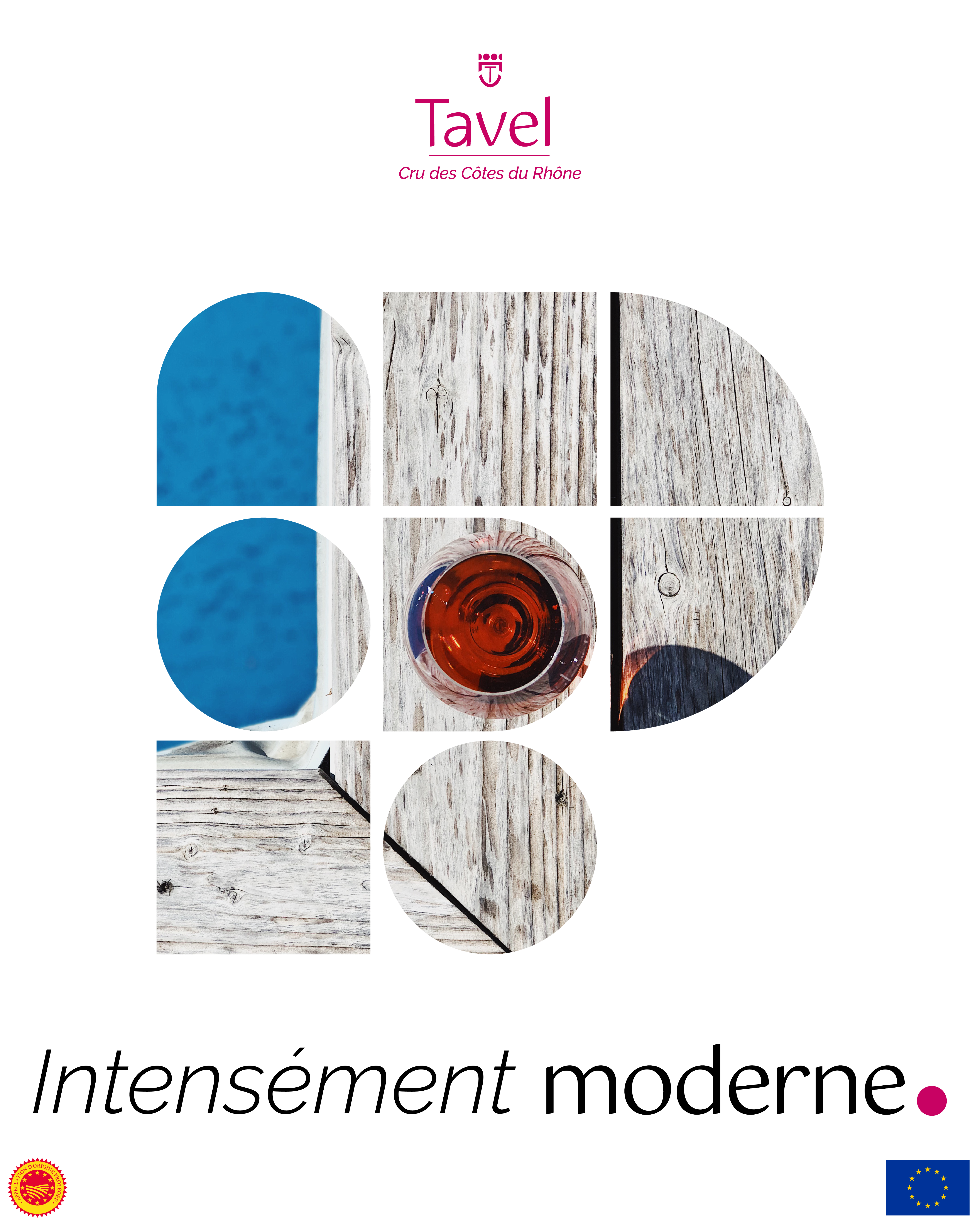 Sur le plan visuel, la campagne adopte une esthétique résolument contemporaine. Les compositions graphiques s’appuient sur un blason de Tavel revisité, dont les formes fragmentées s’adaptent à chaque image.